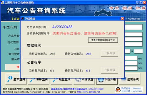 專業(yè),實用,權(quán)威!金思維《汽車公告查詢系統(tǒng)》是由隨州市金思維網(wǎng)絡(luò)科技有限公司于2005年10月獨立開發(fā)完成的(軟件著作權(quán)登記證書編號:2007SR16880),用于查詢?nèi)珖鞯剀囕v生產(chǎn)企業(yè)及車輛技術(shù)參數(shù)。近幾年,根據(jù)用戶的意見和建議,我們不斷對軟件進(jìn)行改進(jìn)和升級,使其功能更加完善、查詢更加方便: